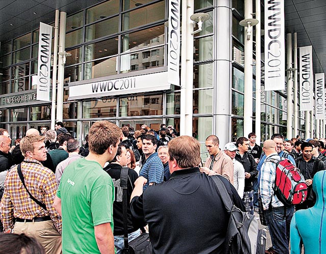 蘋果迷熱情非常,開始前兩小時, WWDC會場外就已大排長龍。
