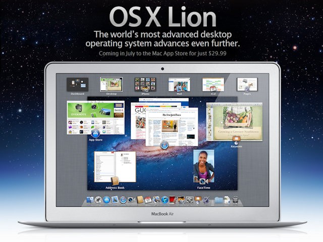 早於今週一 Apple 已經在各地的 Apple 直銷店的展示機器中,安排了`全新 Mac OS X Lion 作業系統,同時宣傳廣告也開始出現, Apple 未正面回應在 Mac OS X Lion 正式上市的同時,新一代 MacBook Air 與 Mac Mini 產品會否同時上市。