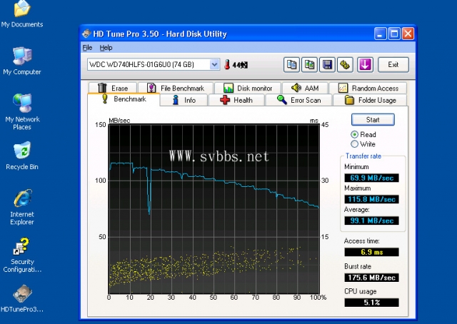 READ 比新版慢,但ACCESS TIME 6.9ms 比新版快,留意溫度是 44度