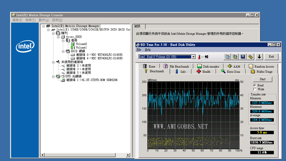 用底板既 Intel Matrix RAID  玩法,將每隻 HD 頭10GB 來做 Raid 0 ,剩餘空間就做 Raid 1。