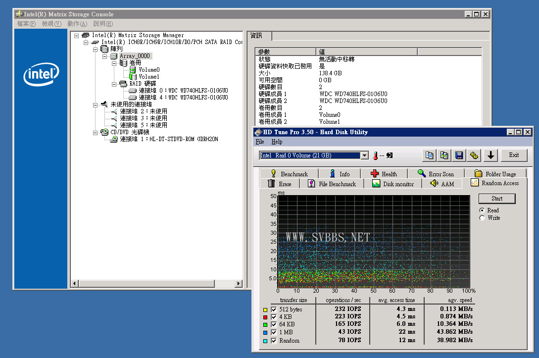 由於每隻 HD 頭10GB 來做 Raid 0,Access Time 也縮小到 5.0ms 和 SAS HD 看齋。