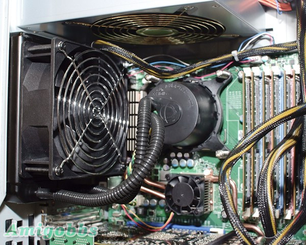Aspire G7750的CPU為Intel Core i7-980X EE,6核心、3.3GHz(Turbo Boost可以到3.6GHz)與12MB L2快取,目前這顆CPU是Intel在消費端桌上型的旗艦CPU,記憶體加到12GB DDR3,效能當然沒話說,但是溫度也沒話說,所以主機配備了水冷,而且不用換水冷液。
