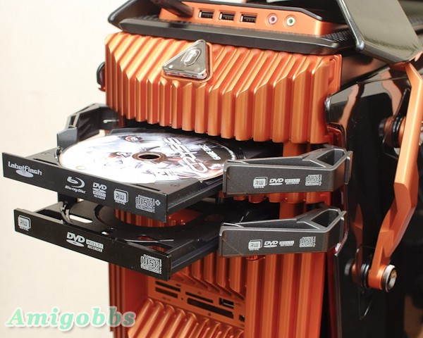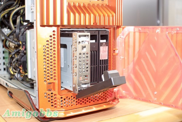 另外,Aspire G7750出廠有三顆硬碟,一顆是160GB的Intel X25-M G2 SSD以及兩顆1TB的機械式硬碟,從相片中可以看到硬碟架各自獨立並且不用拆機殼就可以抽出,而且當系統碟的硬碟架有特別標示,這樣在更換硬碟時不怕拔錯。再者,光儲存則預載兩款,一個是藍光燒錄器,另一則是DVD Super Muliti,也是一次到位。