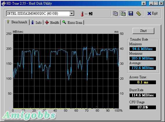 HD Tune: INTEL SSDSA2M040G2GC Benchmark