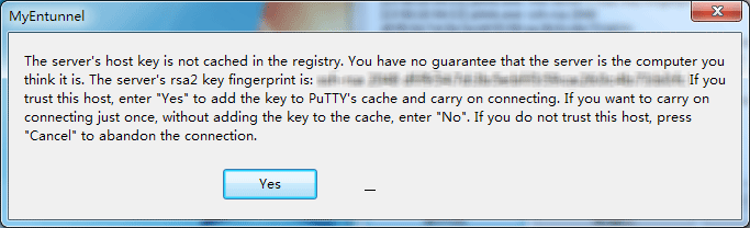 第一次連接服務器時,會彈出對話框問你是否要保存密鑰,選”Yes”,則將必要保存到註冊表,下次連接就不會再提示;如果選“No”,則下次連接時還會繼續提示。