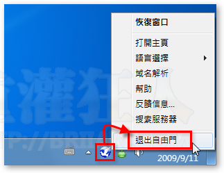 第4步  如果你不想透過自由門上網,想讓電腦直接對外連線的話,請在桌面右下角的自由門圖示按一下滑鼠右鍵,再點選「退出自由門」即可。
