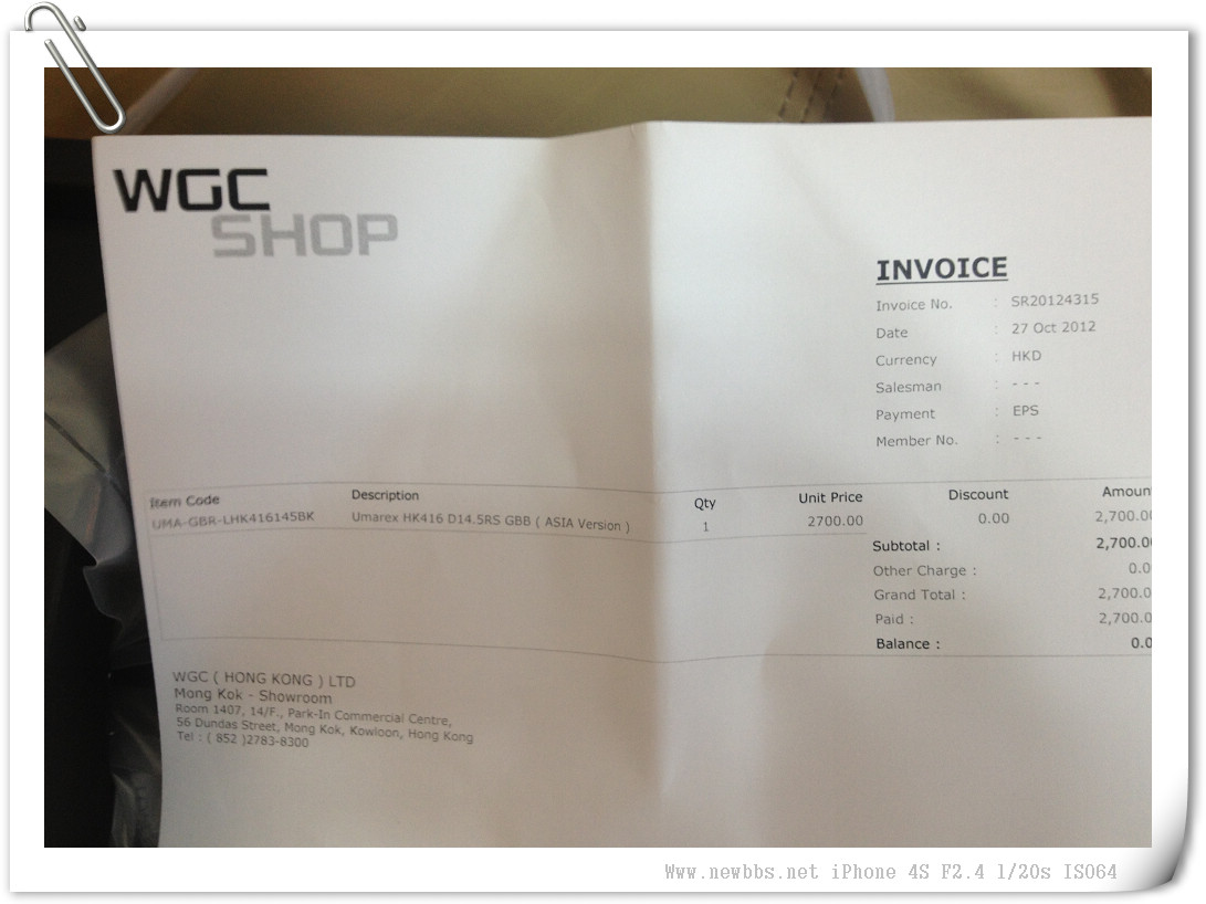 昨天便到 VFC 香港區代理WGC買,去到即刻找 Sales 拿支,試射幾槍單發彈速好慢,覺得有點失望,店員說這是第二批貨,心想反正都會買沒必要要求什麼了,網上好評如潮也不會買錯,付錢拿槍開車回家。
