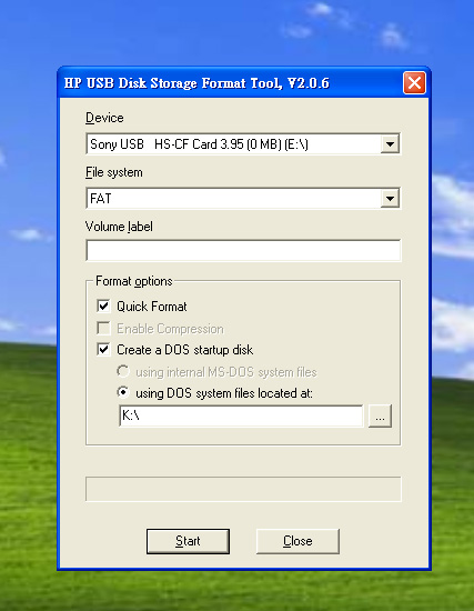 第一,將你的 USB 手指 格式化做能開機的 DOS系統,使用 hp usb disk storage format tool如下圖