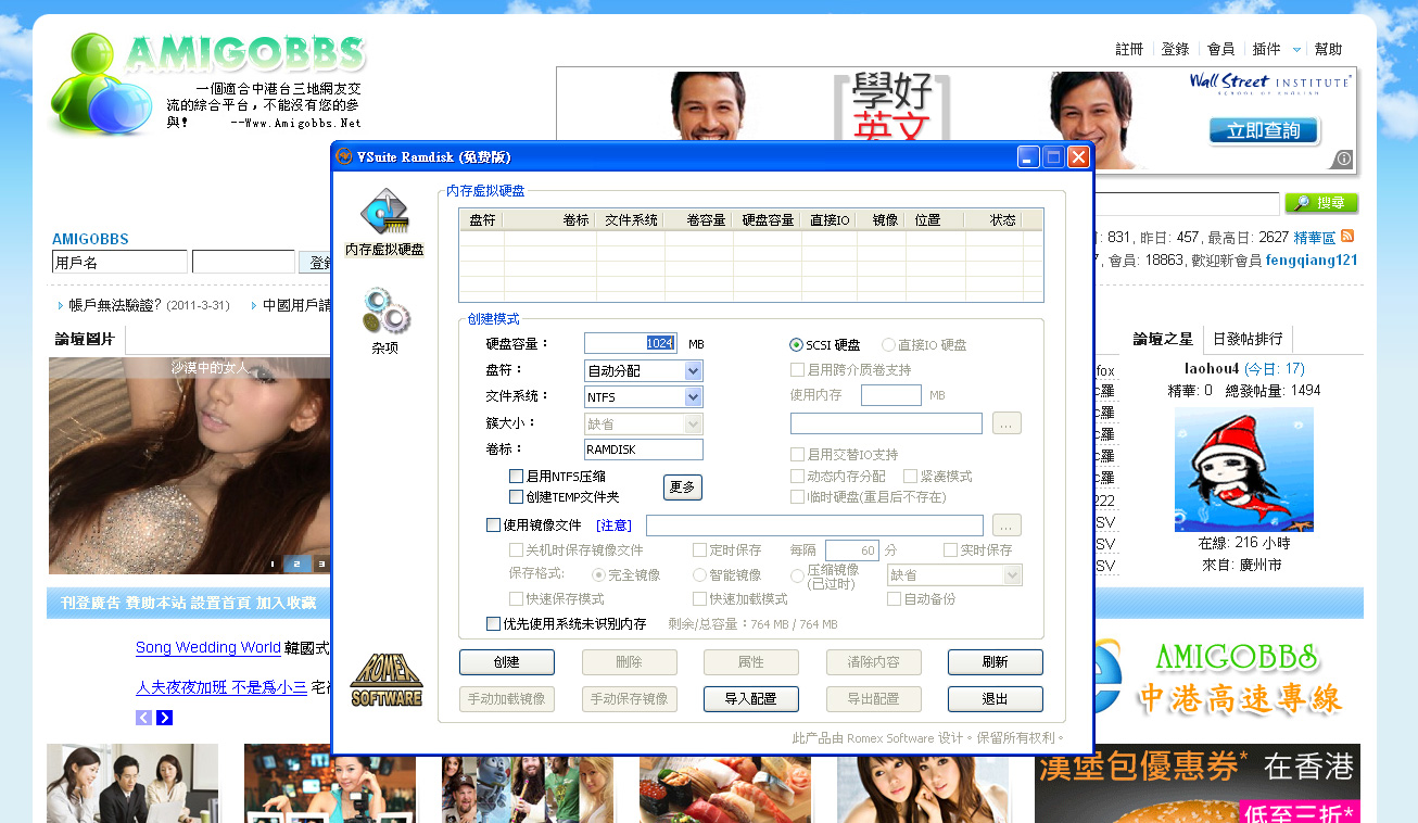 眾多 Ramdisk 軟件,個人喜歡Vsuite Ramdisk 因為簡單和穩定,也有中文界面。我個人使用Vsuite Ramdisk都有兩年以上經驗,我的 Web server 都有裝Vsuite Ramdisk,值得推薦給大家。